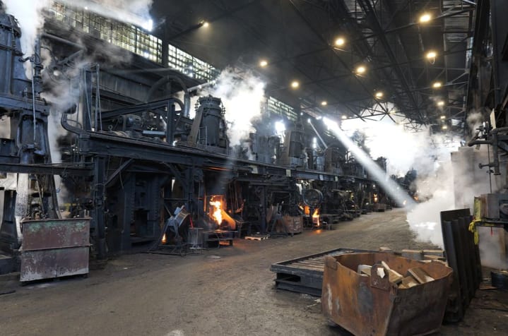 Underfoot, the floor tells its own story. It is technically dirt, but decades of oil saturation have turned it into something closer to warm margarine. Forklifts struggle for traction, often slipping as they transport molten steel weighing thousands of pounds. Overhead, cranes and hoists move constantly. Every drop of the forge hammer sends vibrations through the structure—so powerful that buildings half a mile away reportedly shake.